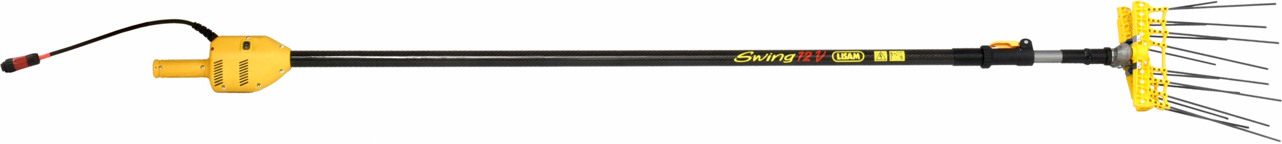 E' anche leggero, flessibile, maneggevole ed efficace nella raccolta. I ranghinatori da raccolta, realizzati in fibra di carbonio, effettuano un movimento ellittico per ottimizzare la penetrazione dei rami e delle foglie degli ulivi, staccando i frutti ancora piu piccoli e piu resistenti. Swing puo essere alimentato da qualsiasi batteria da 12 volt con consumo limitato (assorbimento 8Ah / ora) e puo coprire un ampio raggio di terra, grazie al cavo da 15 metri in dotazione. Questo e' uno strumento innovativo quando gestito da esperti agricoltori.